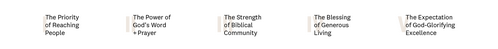 We exist to glorify God by >< discipling one another to reach and raise ^^ the next generation >> to live out God's Truth. <†>